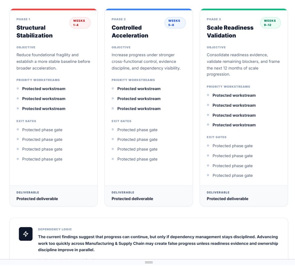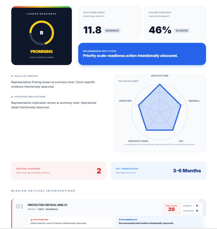 A structured view of whether the program is ready, at risk, or vulnerable under scale pressure.